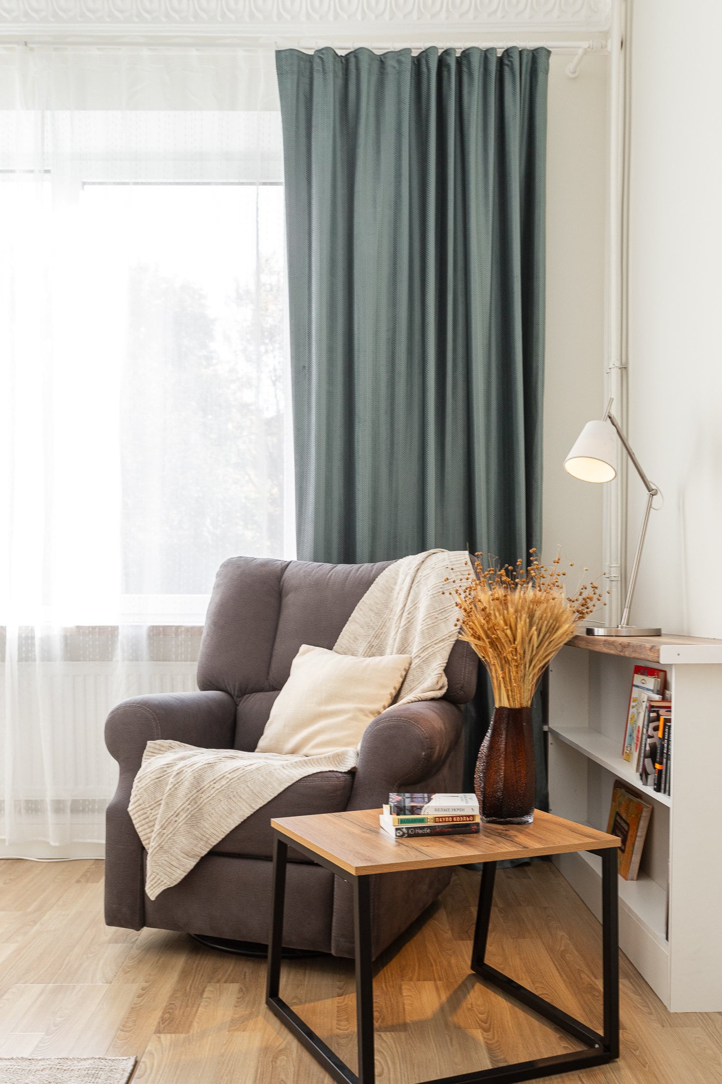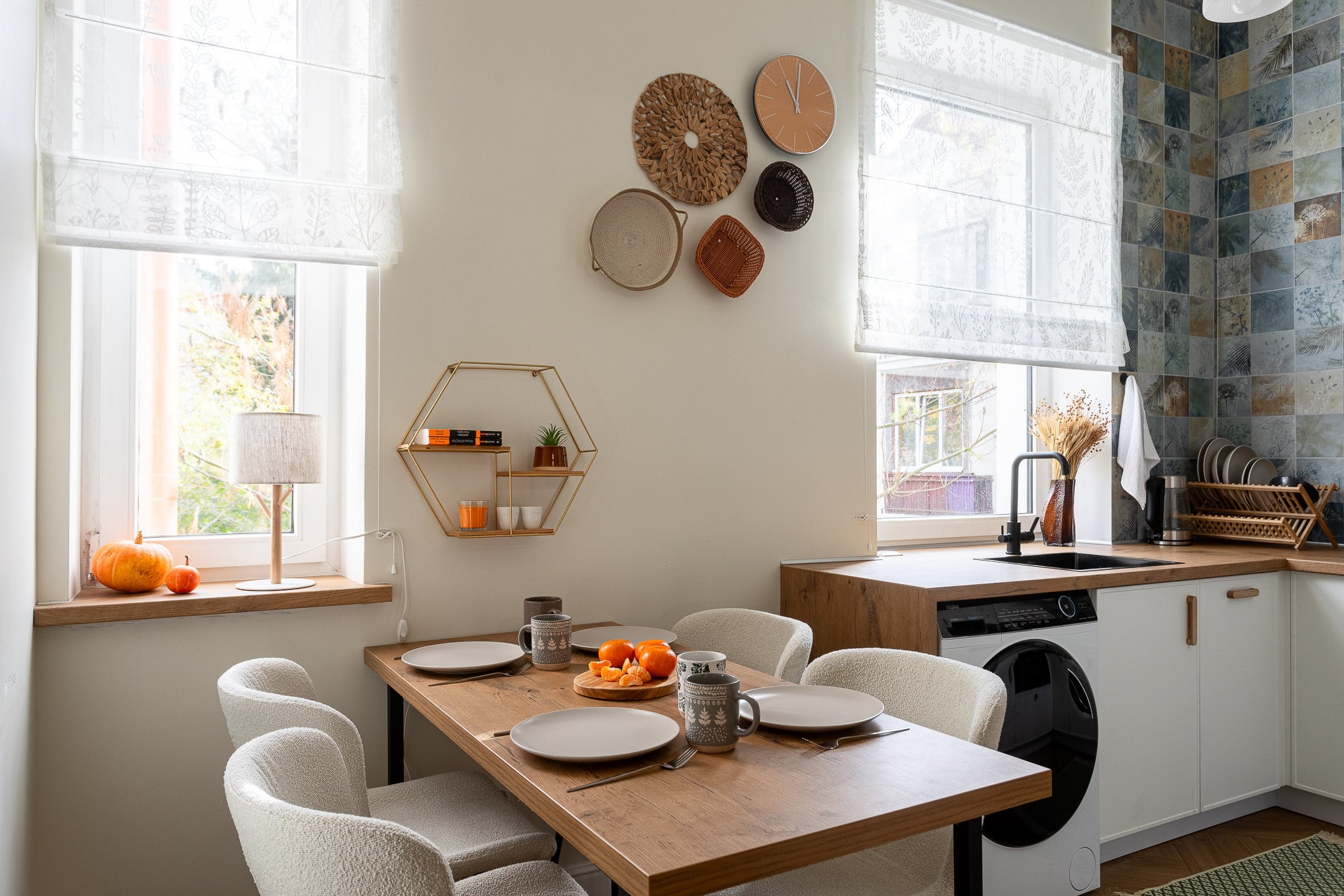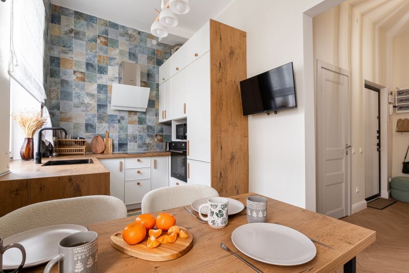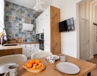 с современным интерьером. Среди удобств – кухня с электроплитой, духовым шкафом, электрочайником, микроволновой печью