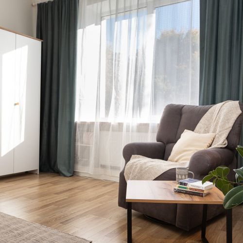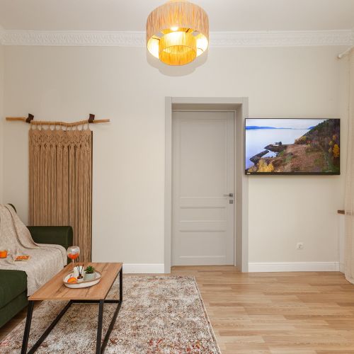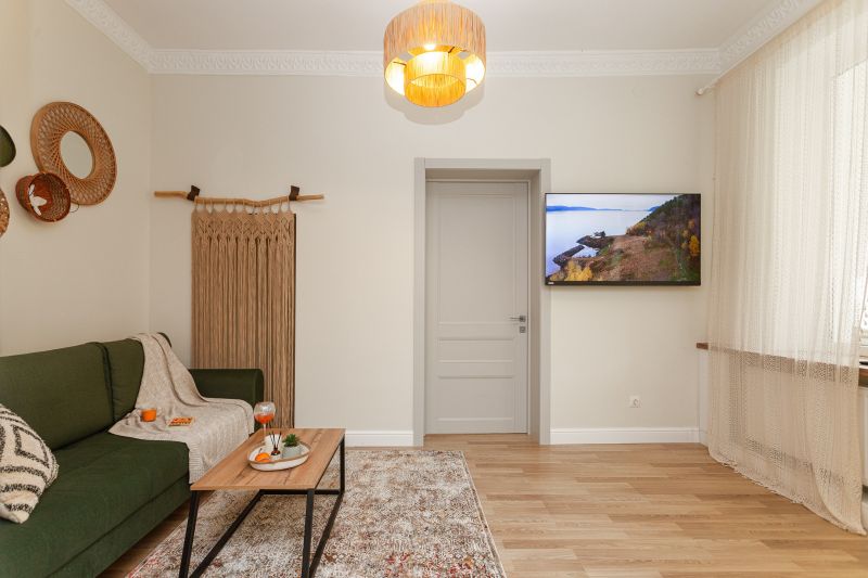 Апартаменты расположились в четырехэтажном здании на улице Чайковского. В распоряжении гостей двухкомнатный 2-местный номер
